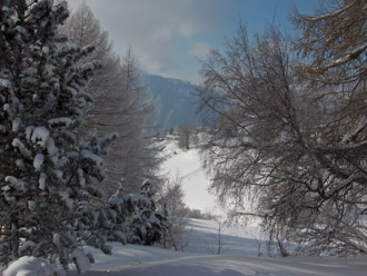| An einem föhnigen Nachmittag im Februar auf der Motta mit den Schneeschuhen unterwegs |